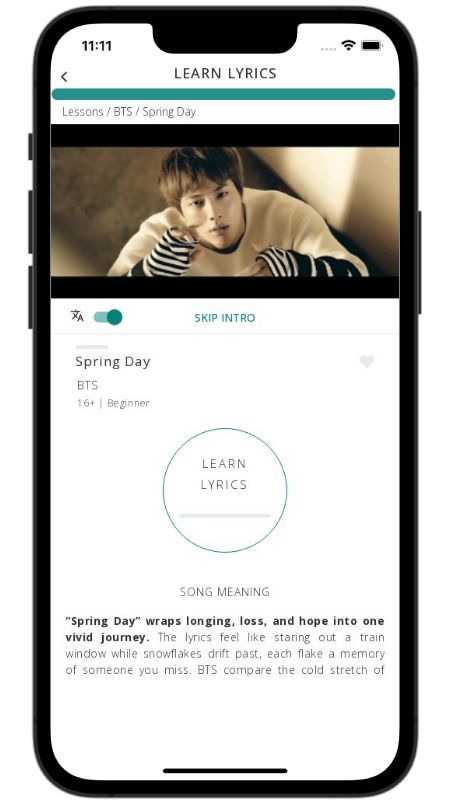 In addition to reading lyric translations, you can now learn Korean with music and lyrics from your favorite artists.